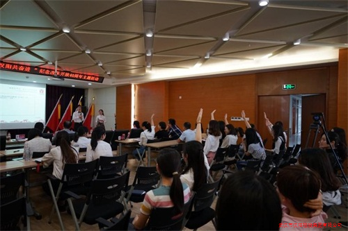 2018年9月29日下午,漢陽(yáng)控股黨委與團(tuán)總支聯(lián)合組織的“‘控股青年說(shuō)·我與漢陽(yáng)共奮進(jìn)’——慶祝建國(guó)69周年暨改革開(kāi)放40周年主題活動(dòng)”在金龍公館寫(xiě)字樓11樓隆重舉行,團(tuán)區(qū)委領(lǐng)導(dǎo)、漢陽(yáng)控股黨委及紀(jì)委成員、經(jīng)營(yíng)班子領(lǐng)導(dǎo)、工會(huì)主席和團(tuán)總支書(shū)記參加了活動(dòng)。