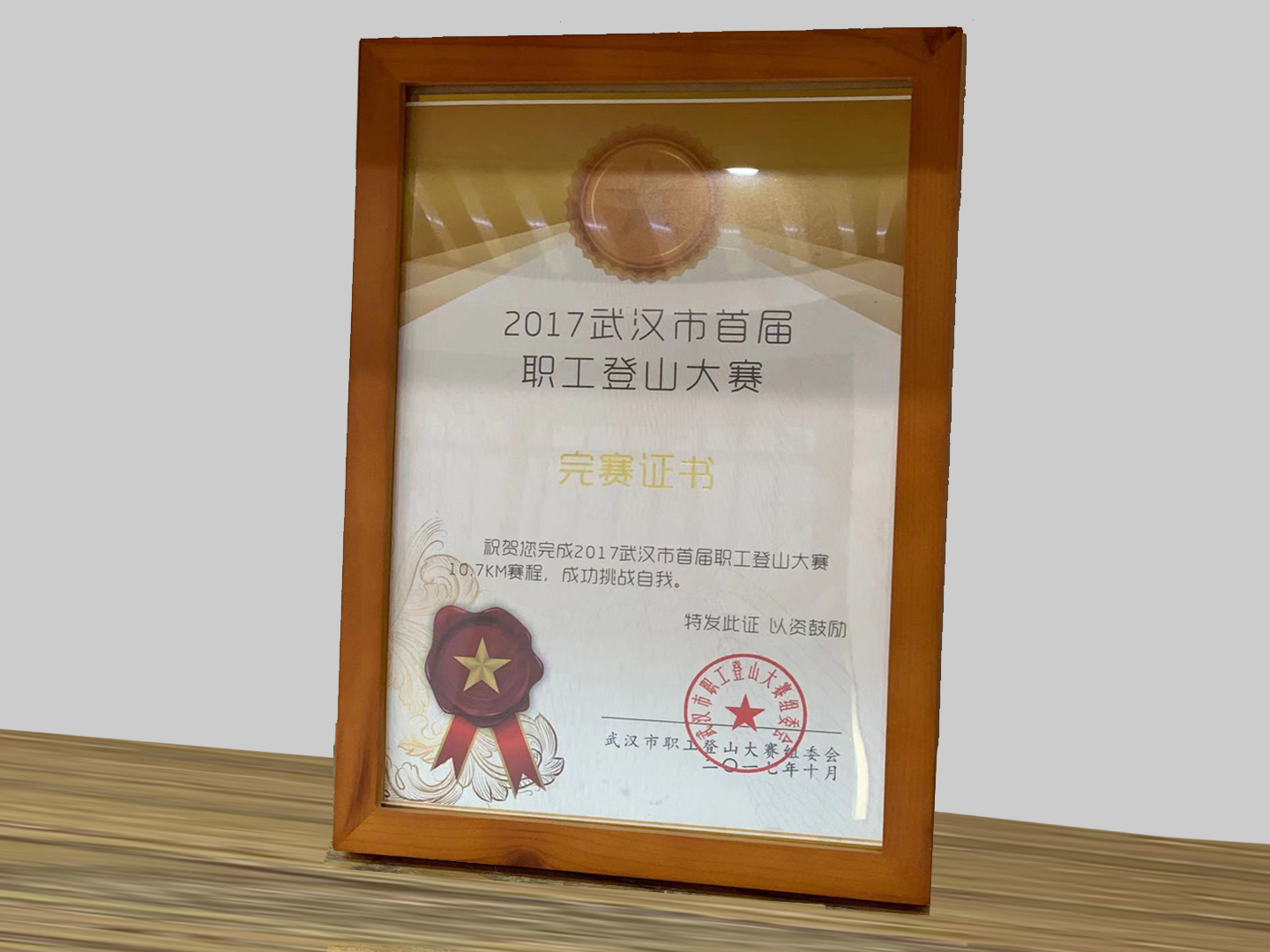 2017武漢市首屆職工登山大賽完賽證書